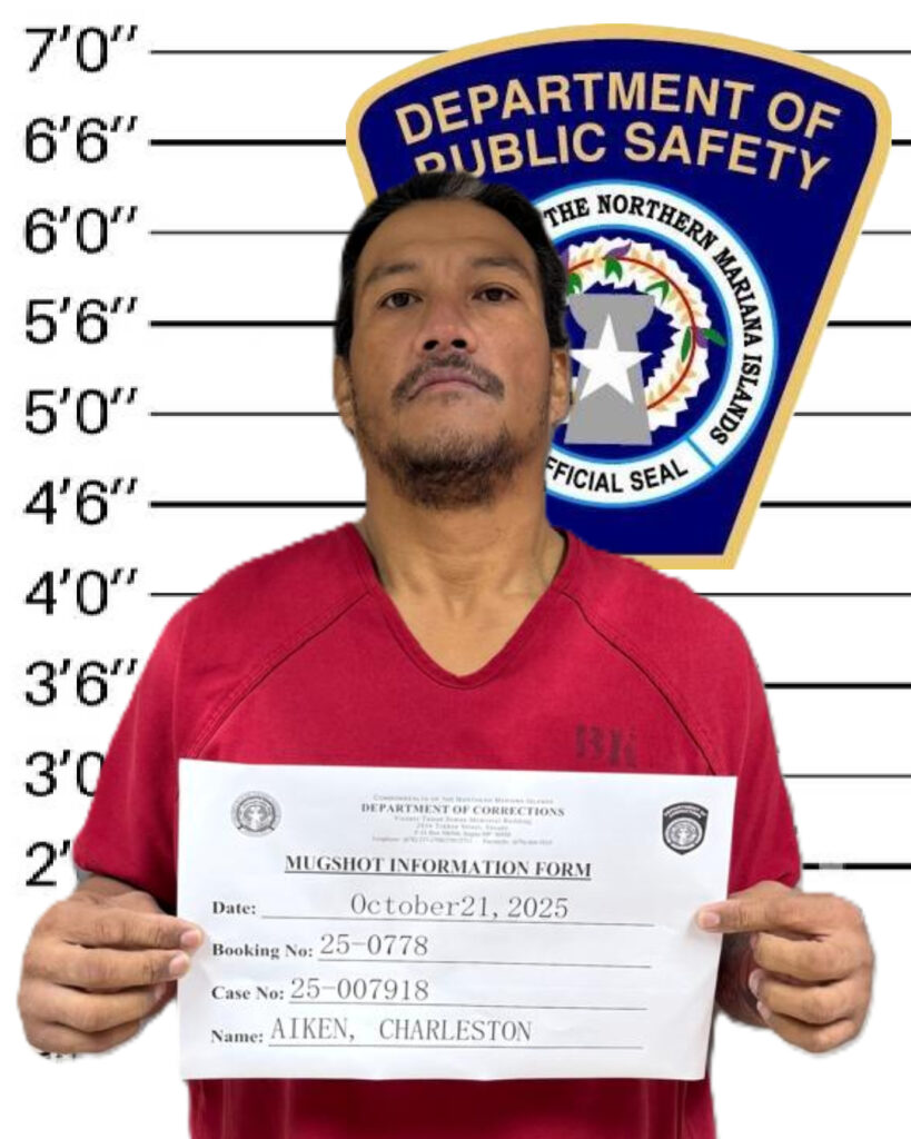 SAIPAN – Charleston Aiken is being held on $10,000 bail after a judge issued an arrest warrant Wednesday morning for Disturbing the Peace and Assault & Battery, according to the Department of Public Safety. Aiken was served the warrant at 10:38 a.m. at the Department of Corrections, where he is detained following a separate arrest on Oct. 21 connected to another disturbance and assault-and-battery case reported behind Shany Poker in Chalan Kanoa.