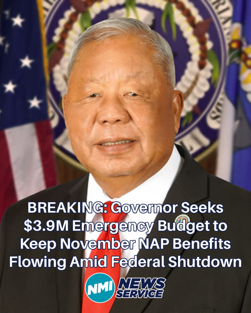 SAIPAN — Governor David M. Apatang has asked the Legislature to authorize an emergency $3.9 million appropriation from the FY 2026 Revised General Fund to cover November 2025 Nutrition Assistance Program (SNAP/NAP) benefits after the federal shutdown suspended November funding. The request—sent to Senate President Karl King-Nabors and House Speaker Edmund S. Villagomez—follows USDA-FNS notifications on Oct. 10 and Oct. 22 confirming the halt, putting thousands of CNMI households at risk.