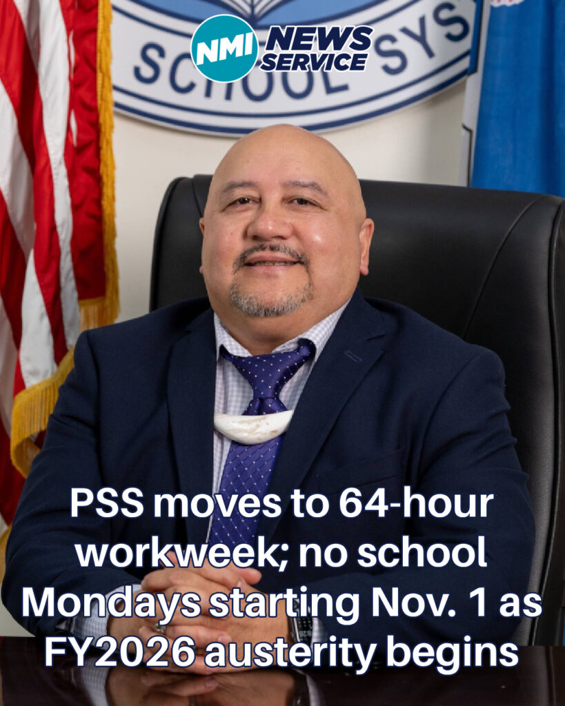 SAIPAN – In a memorandum released by PSS Commissioner of Education Lawrence F. Camacho, the Public School System announced it will shift to a 64-hour work schedule beginning Nov. 1, canceling all Monday classes and work until a revised FY2026 budget is approved. PSS has been operating since Oct. 1 under a $31.7 million local appropriation that Camacho described as insufficient to cover the real costs of operating 20 schools, serving more than 8,000 students, and employing nearly 1,500 staff. With a larger revision still under deliberation by the legislative and executive branches, the commissioner said the system must implement cost-cutting measures to stay within the set budget.