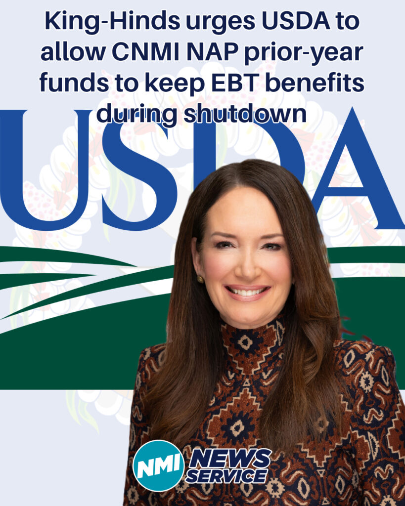 WASHINGTON — U.S. Rep. Kimberlyn King-Hinds asked U.S. Department of Agriculture Secretary Brooke Rollins to authorize the Commonwealth’s Nutrition Assistance Program (NAP) to use unspent prior-year federal funds so monthly food benefits can continue during the ongoing federal government shutdown. In an Oct. 28 letter, King-Hinds said allowing CNMI NAP to carry forward legally available balances would keep benefits flowing through the EBT system “without interruption until these funds are expended.”