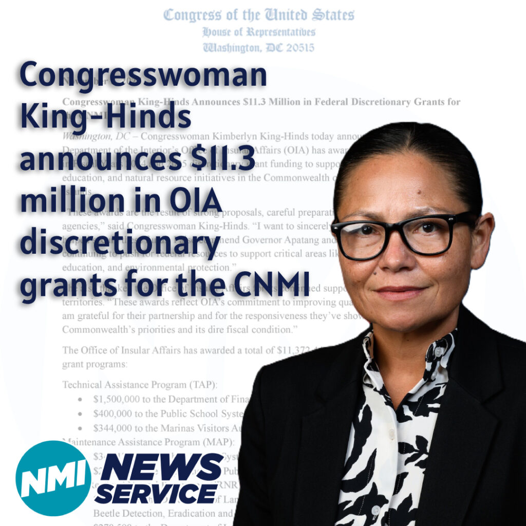 SAIPAN — Congresswoman Kimberlyn King‑Hinds announced that the U.S. Department of the Interior’s Office of Insular Affairs has awarded $11,372,446 in Fiscal Years 2024 and 2025 discretionary grants to support infrastructure, energy, education, and natural‑resource initiatives in the Commonwealth of the Northern Mariana Islands.