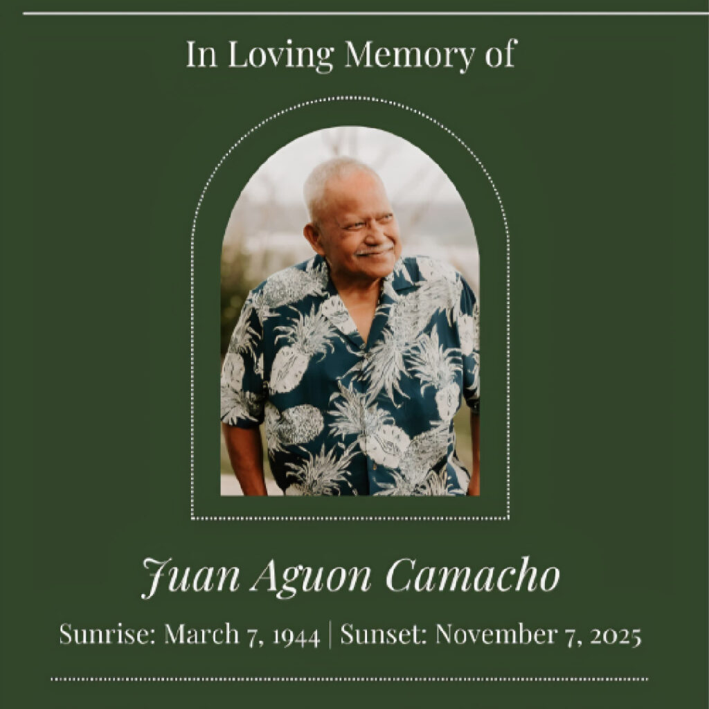 With heavy hearts, the family of Juan Aguon Camacho, better known to many as “Juan Binadu,” announces his passing on November 7, 2025, at the age of 81. Born on March 7, 1944.