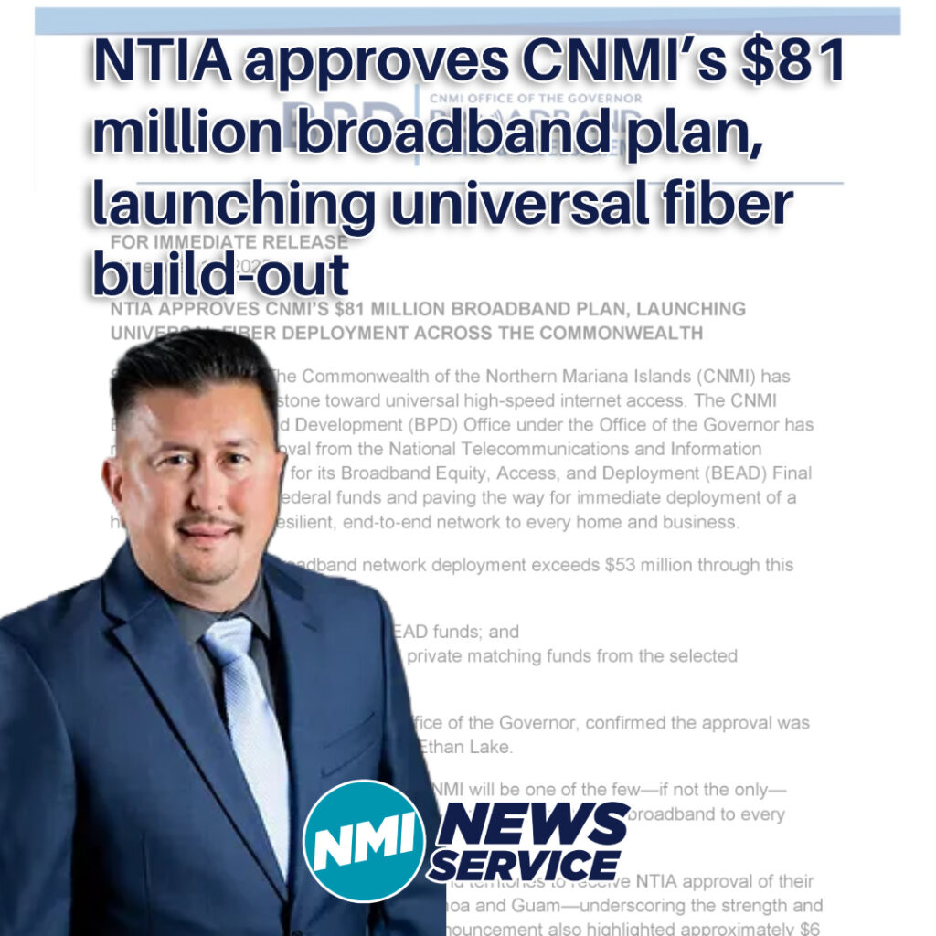 SAIPAN — The National Telecommunications and Information Administration has approved the Commonwealth of the Northern Mariana Islands’ Final Proposal under the federal Broadband Equity, Access, and Deployment program, placing the CNMI among 18 states and territories now cleared to move toward BEAD-funded broadband deployment.