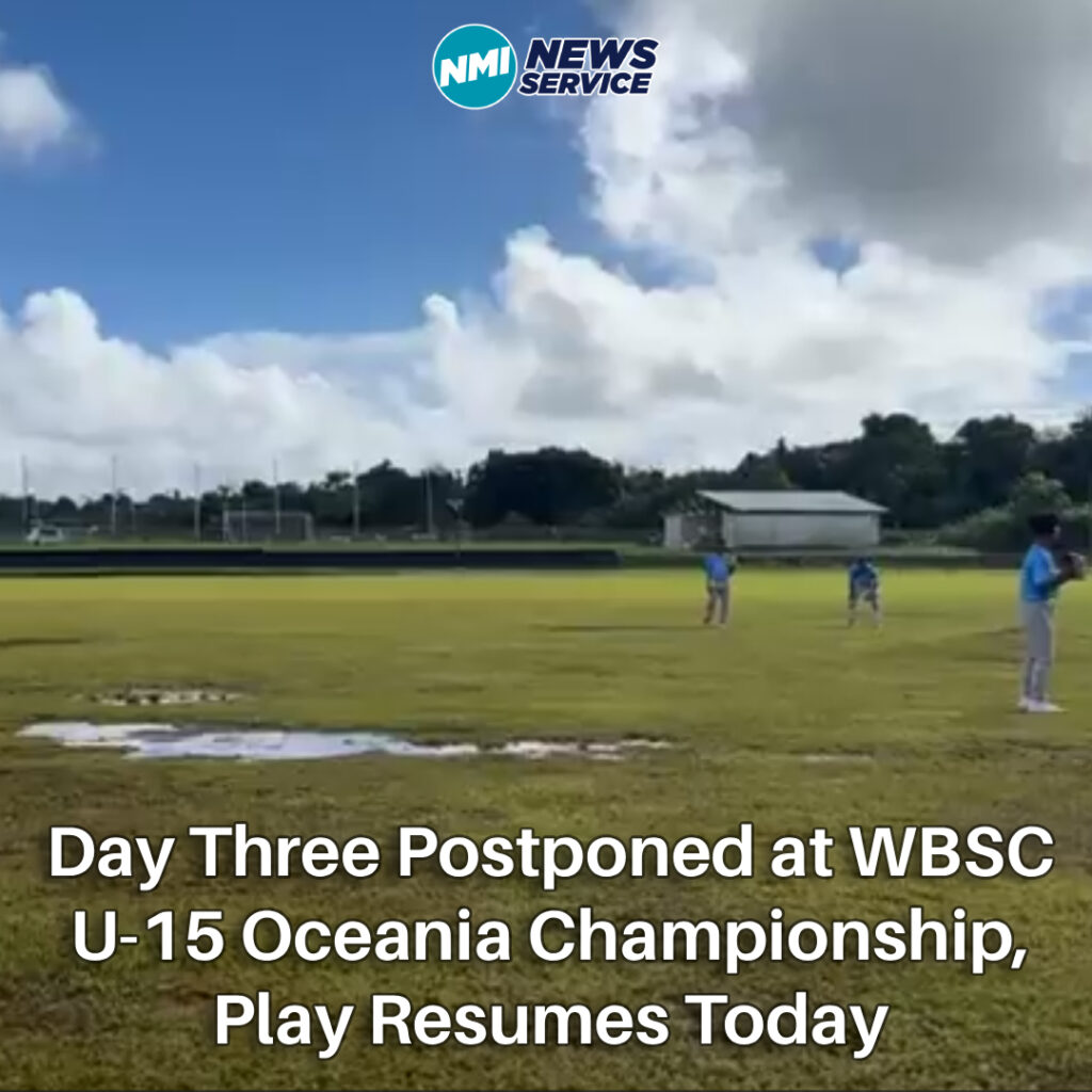 Dededo, GUAM — Day Three of the WBSC U-15 Men’s Baseball Oceania Championship 2025 was postponed Sunday due to wet field conditions at the Dededo Sports Complex, with opening-round play set to resume today as teams close out pool competition.
