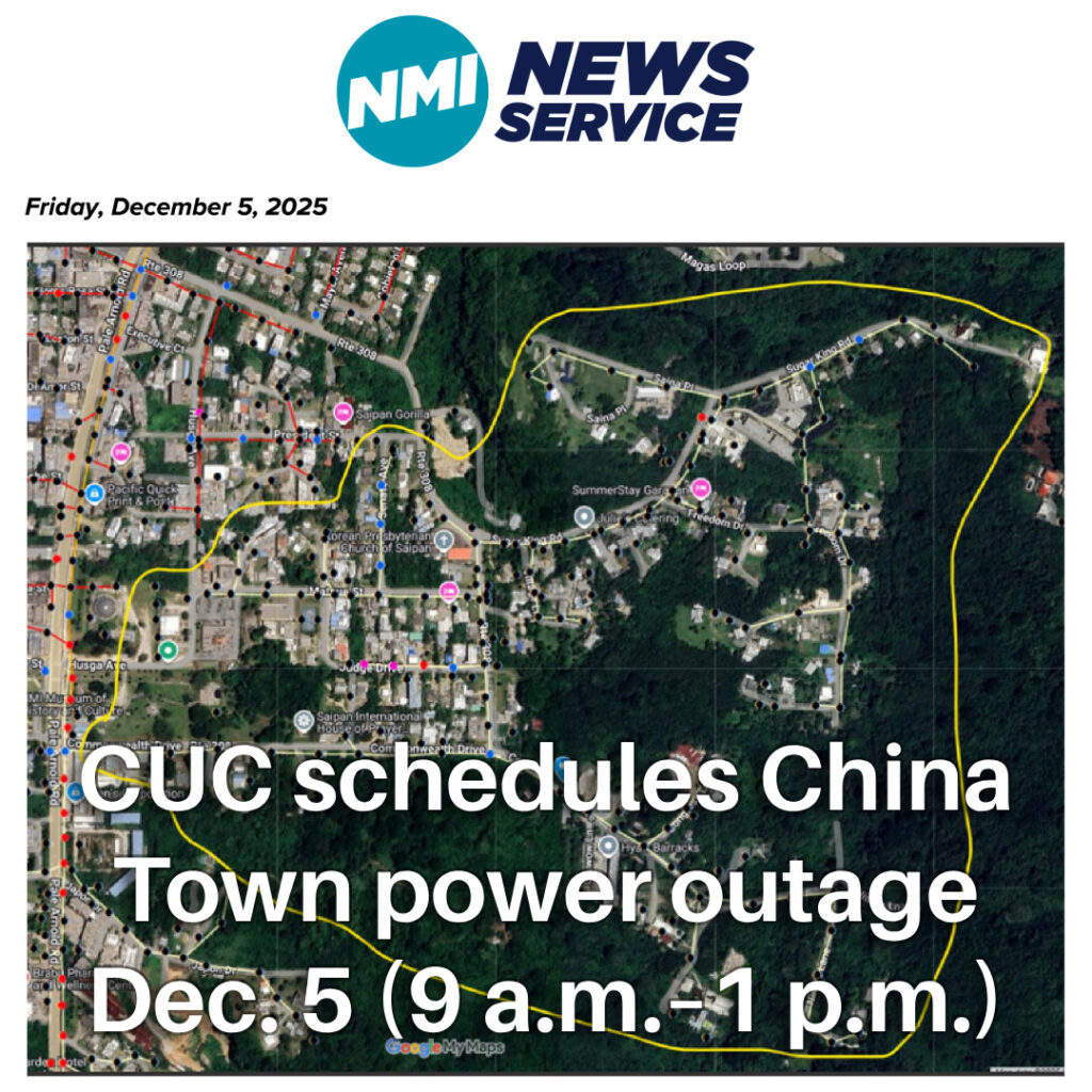 SAIPAN — The Commonwealth Utilities Corporation (CUC) issued a public advisory Tuesday announcing a scheduled power service interruption for China Town on Friday, Dec. 5, to allow linemen to upgrade the power distribution system.