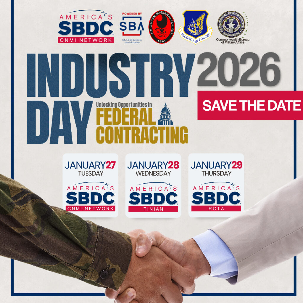 SAIPAN — The CNMI Small Business Development Center (SBDC) Network announced the dates for the 2026 CNMI Industry Day, a three-island event scheduled for Jan. 27–29, 2026, in partnership with Northern Marianas College, Pacific Air Force (PACAF), and the Commonwealth Bureau of Military Affairs (CBMA).