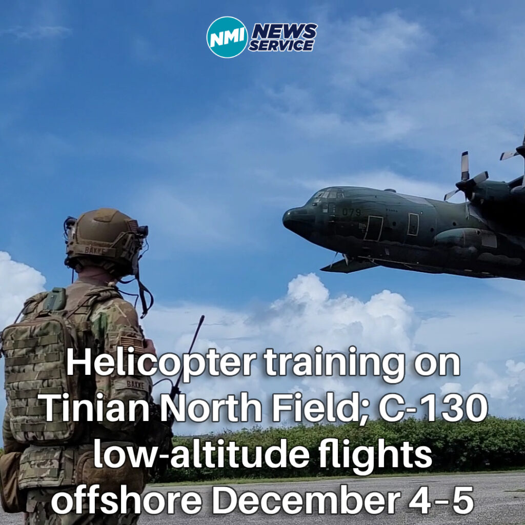 CBMA: Helicopter training on Tinian North Field; C-130 low-altitude flights offshore December 4–5