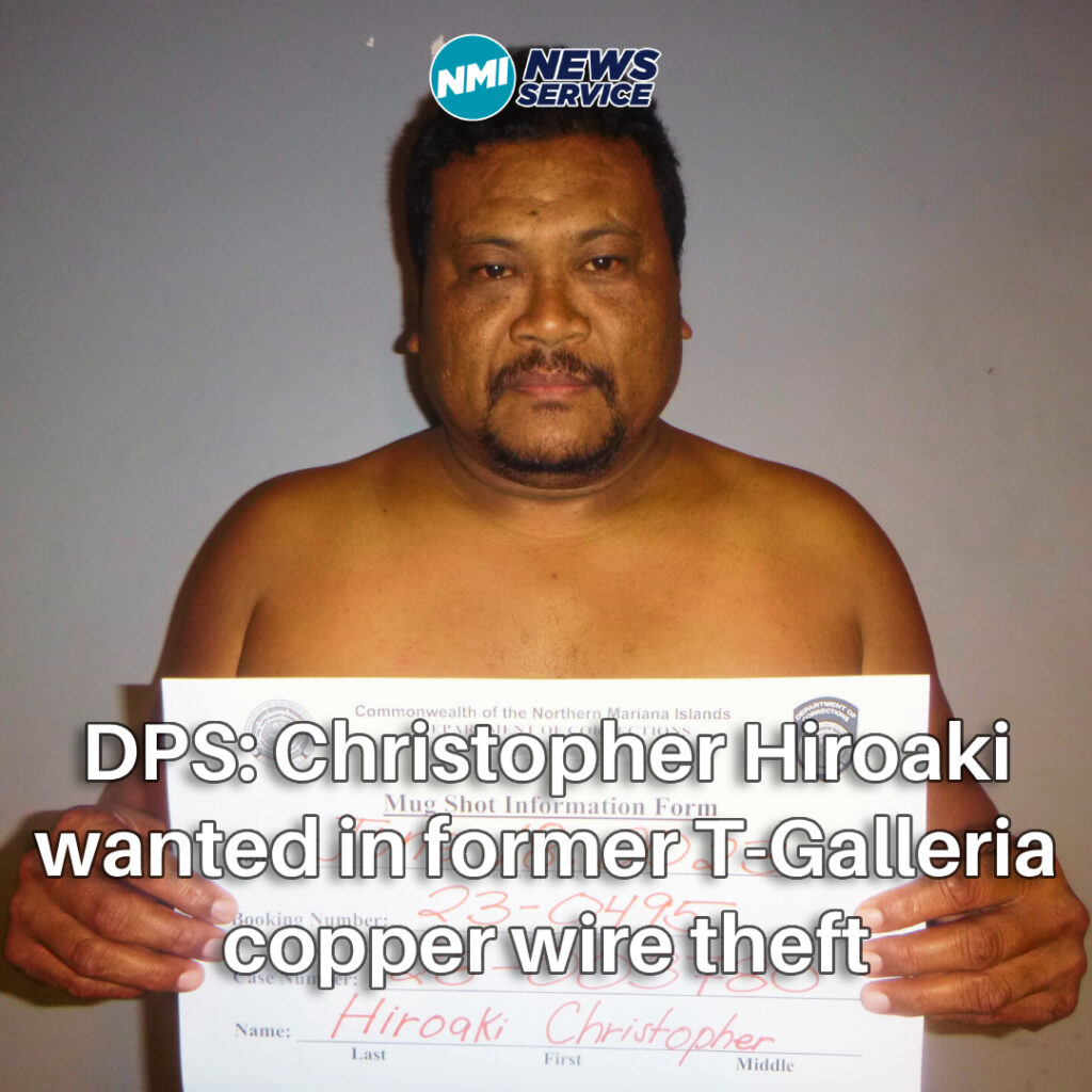 SAIPAN — The Department of Public Safety is asking for the public’s help to locate Christopher Hiroaki, who investigators say remains at large in connection with a burglary and copper wire theft at the former T-Galleria building in Garapan, after two other suspects were arrested on warrants signed this week.