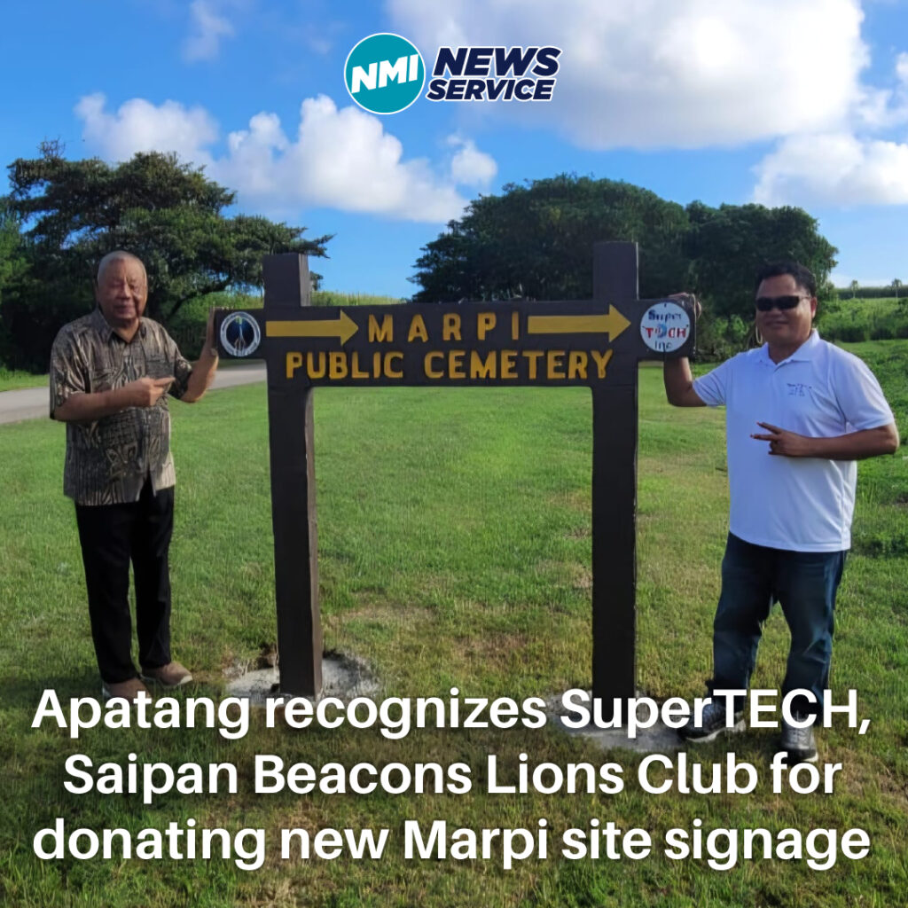 SAIPAN — Gov. David M. Apatang recognized a joint project by SuperTECH Inc. and the Saipan Beacons Lions Club, led by SuperTECH owner Mar Masilungan, for donating newly installed signage at several of Marpi’s most visited tourist and historic sites, including Banzai Cliff, the Public Cemetery, Suicide Cliff, the Grotto, and Bird Island, according to the Office of the Governor. The release said Apatang, Masilungan, and Parks and Recreation Director Mike Cruz marked the installation with a brief unveiling and photo in Marpi. The new signs are intended to improve visitor navigation and accessibility while enhancing the overall appearance of the area, the governor’s office said.