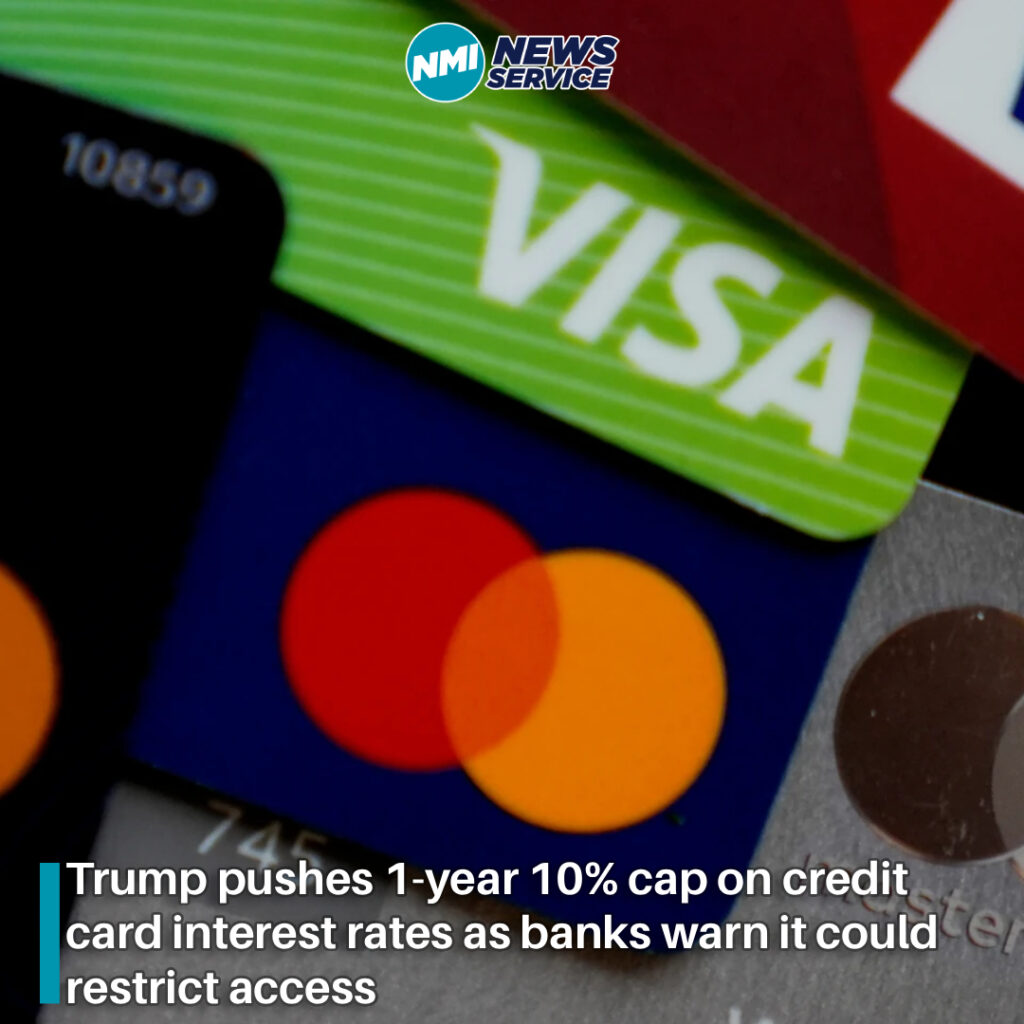 NEW YORK (AP) — Reviving a campaign pledge, President Donald Trump wants a one-year, 10% cap on credit card interest rates, a move that could save Americans tens of billions of dollars but drew immediate opposition from an industry that has been in his corner.