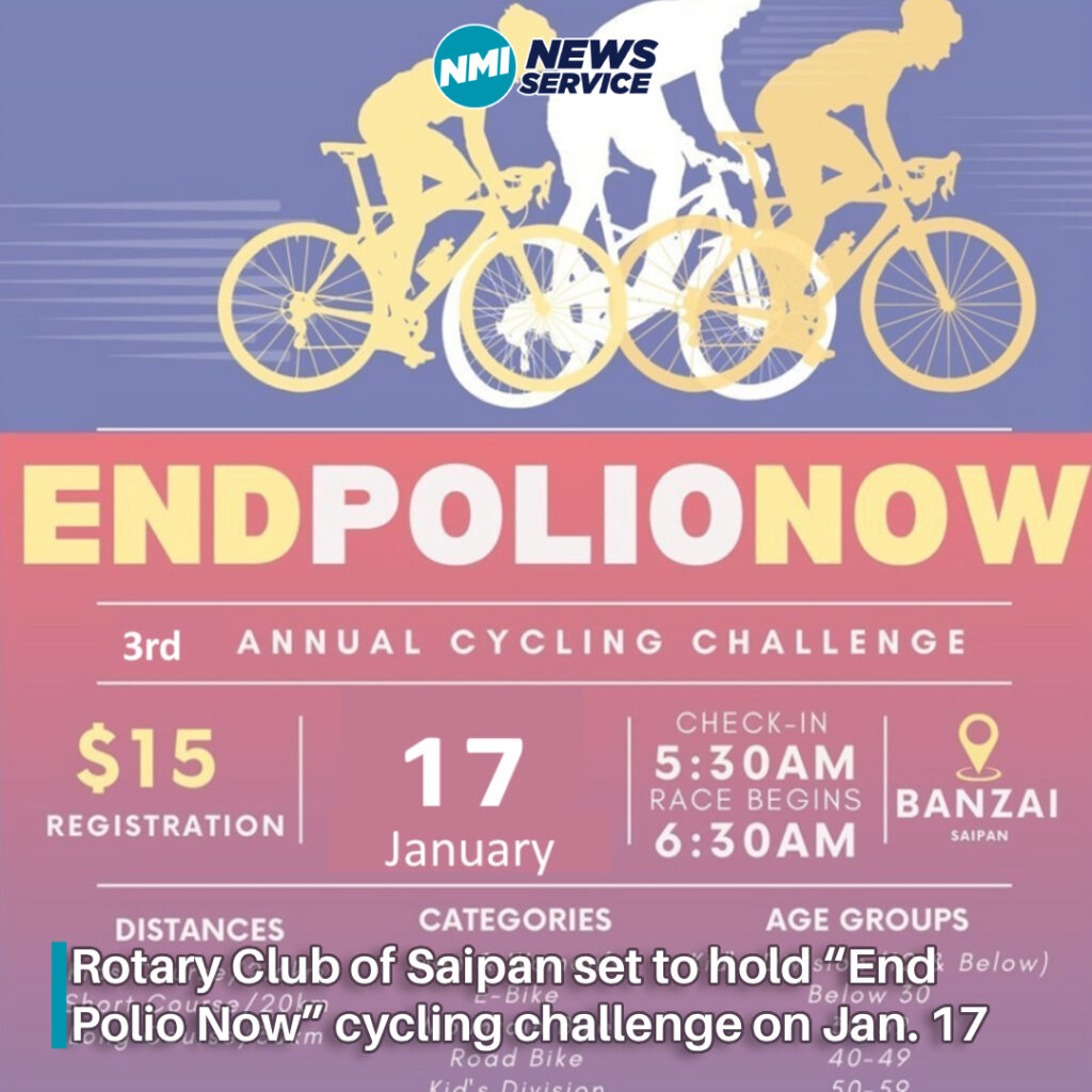 SAIPAN — The Rotary Club of Saipan will hold its 3rd Annual “End Polio Now” Cycling Challenge on January 17, with check-in at 5:30 a.m. and the race starting at 6:30 a.m. at Banzai Cliff.