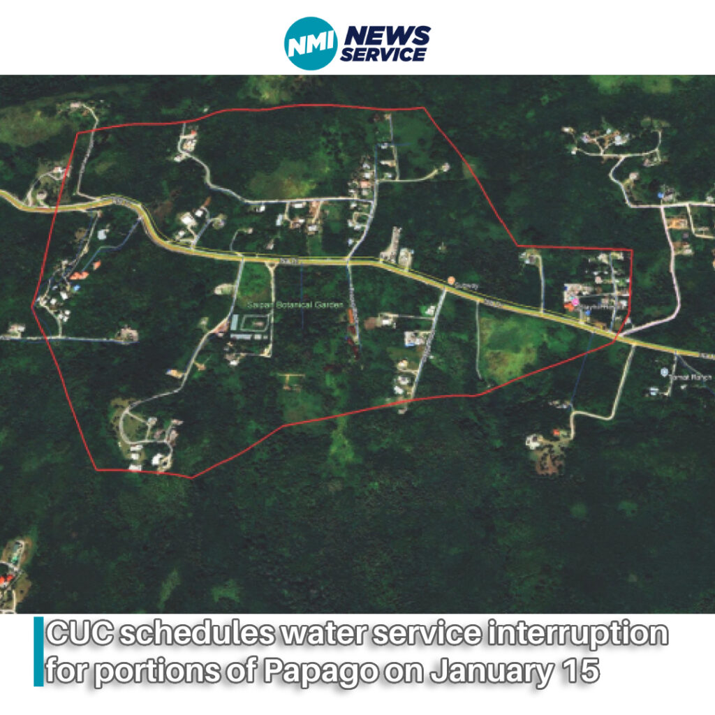 SAIPAN — The Commonwealth Utilities Corporation has scheduled a water service interruption for portions of Papago on Thursday, January 15, from 8 a.m. to 2 p.m., to allow a contractor to connect a new waterline as part of the Tangan-Tangan Drive Waterline Replacement Project.