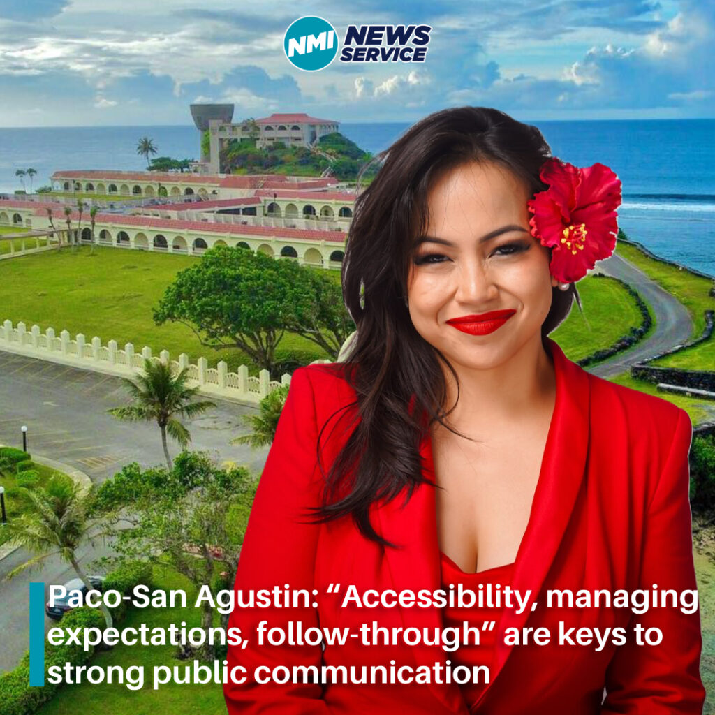 SAIPAN — Krystal Paco-San Agustin, who recently wrapped up her tenure as communications director for Guam Governor Lou Leon Guerrero, told NMI News Service viewers that strong public communication comes down to three habits: accessibility, managing expectations, and follow-through.