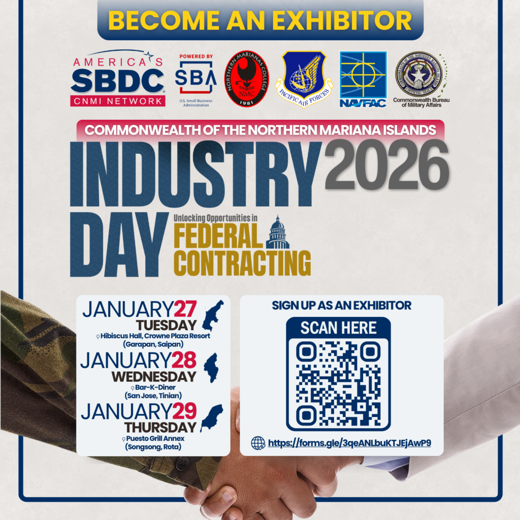 SAIPAN — The CNMI Small Business Development Center (SBDC) Network at Northern Marianas College is now accepting exhibitor registrations for CNMI Industry Day 2026, a three-day tri-island event aimed at connecting local businesses with federal agencies, military partners, and major contractors operating in the region.