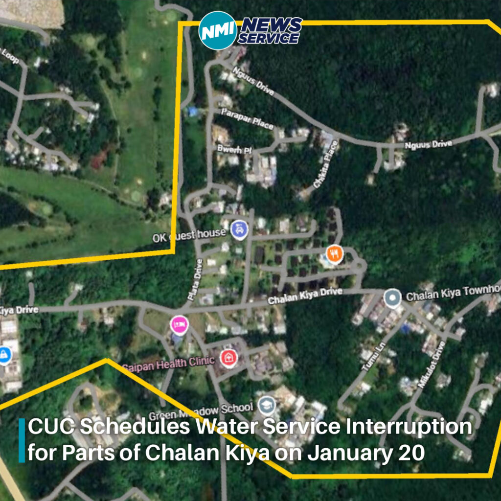 SAIPAN — The Commonwealth Utilities Corporation has announced a scheduled water service interruption for parts of Chalan Kiya on Tuesday, January 20, as crews carry out a new installation.