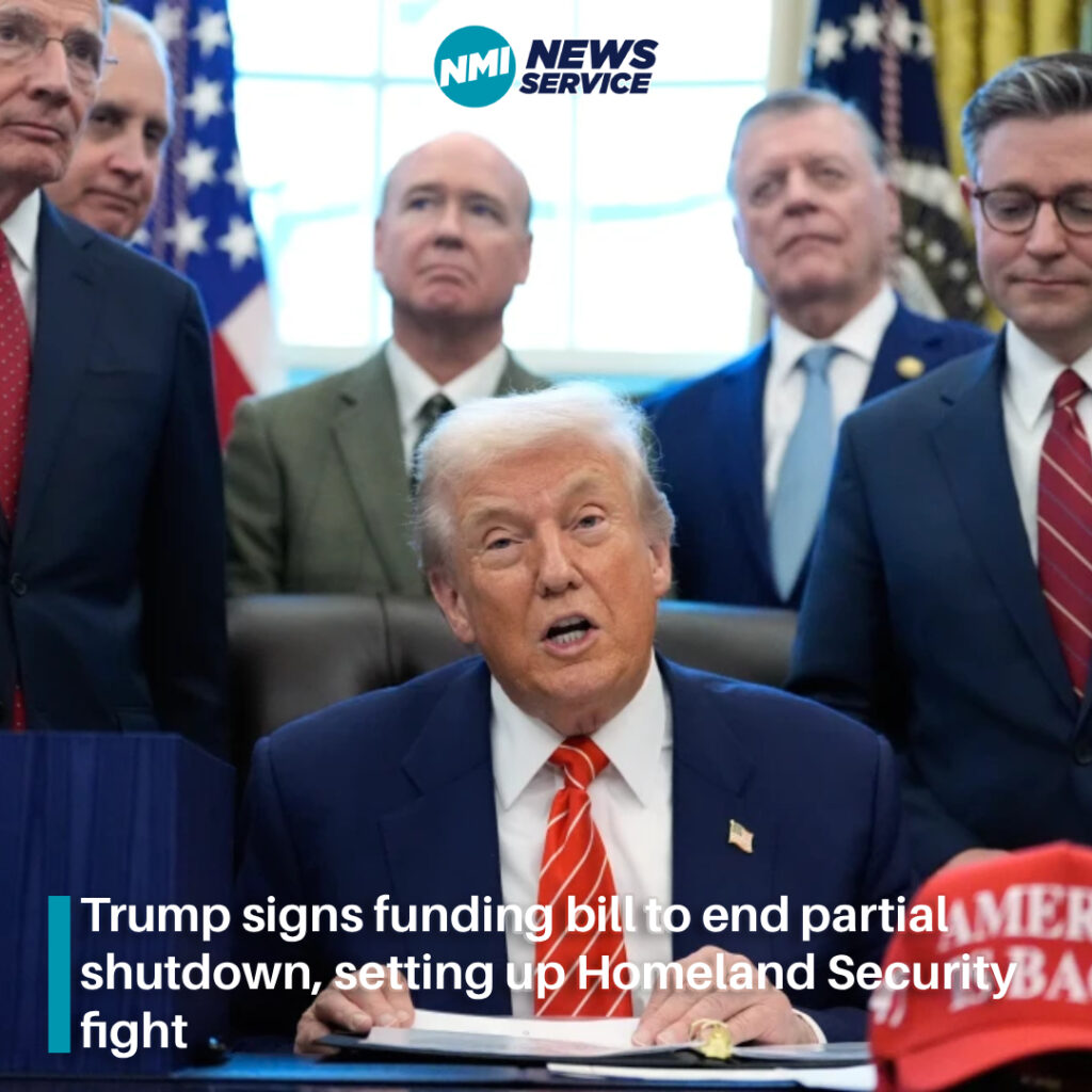 WASHINGTON (AP) — President Donald Trump signed a roughly $1.2 trillion government funding bill Tuesday that ends the partial federal shutdown that began over the weekend and sets the stage for an intense debate in Congress over Homeland Security funding.
