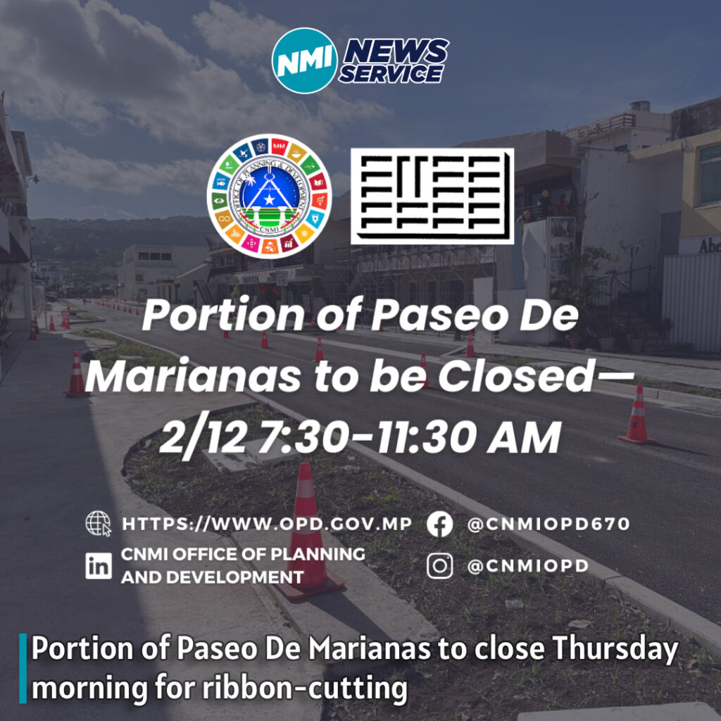 SAIPAN — A portion of Paseo De Marianas in Garapan will be temporarily closed Thursday morning, February 12, for a ribbon-cutting event.