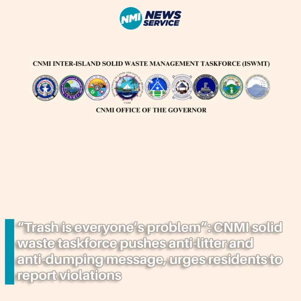 SAIPAN — The CNMI Inter-Island Solid Waste Management Taskforce (ISWMT), under the CNMI Office of the Governor, is pushing a public-awareness message aimed at reducing littering and illegal dumping across the islands, emphasizing that cleanup is not “someone else’s” responsibility.