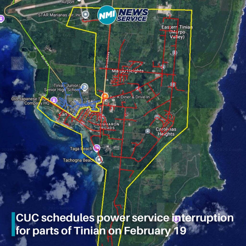 TINIAN — The Commonwealth Utilities Corporation has announced a scheduled power service interruption on Thursday, February 19, affecting portions of Tinian as crews carry out work related to the Tinian Divert Airfield Project.
