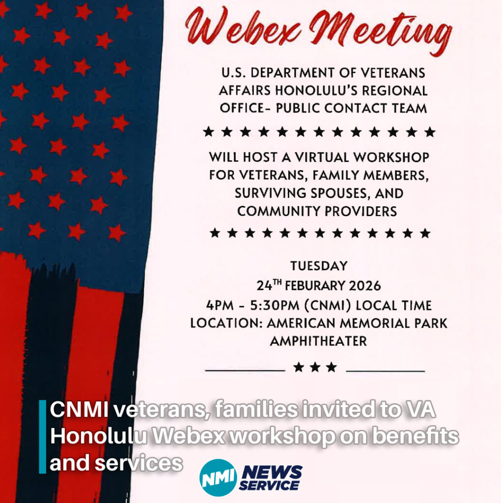 SAIPAN — CNMI veterans, their family members, surviving spouses, and community service providers are being invited to join an upcoming Webex meeting hosted in collaboration with the U.S. Department of Veterans Affairs Honolulu Regional Office Public Contact Team.