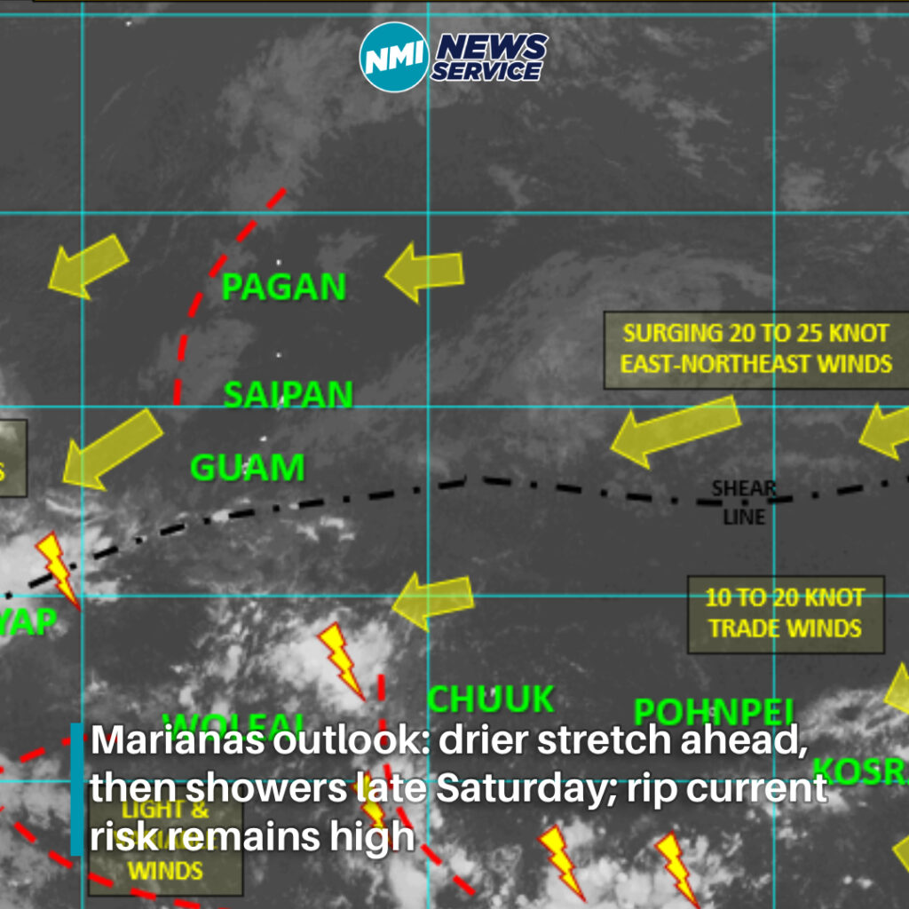 Marianas outlook: drier stretch ahead, then showers late Saturday; rip current risk remains high