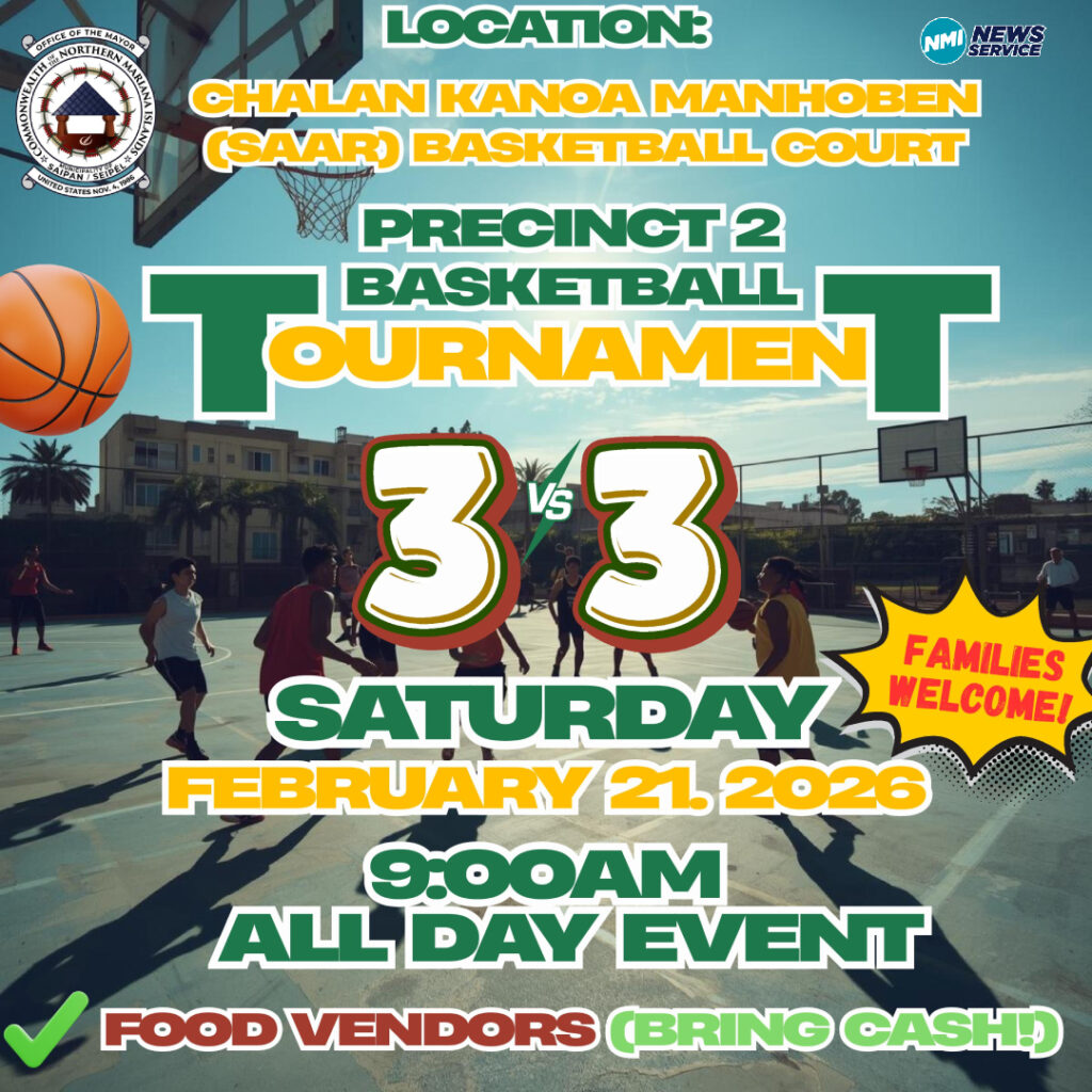 SAIPAN — Got game? The Saipan Mayor’s Office will hold a Precinct 2 3-on-3 Youth Basketball Tournament this Saturday, February 21, starting at 9:00 a.m., at the Chalan Kanoa Basketball Court near the Manhoben Center, now the SAAR (Substance Abuse Addiction and Rehabilitation) Center, and the Chalan Kanoa Cemetery.