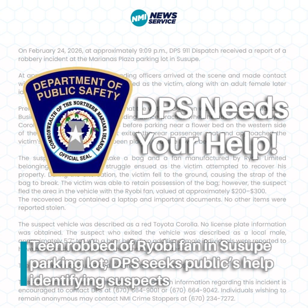 Teen robbed of Ryobi fan in Susupe parking lot; DPS seeks public’s help identifying suspects