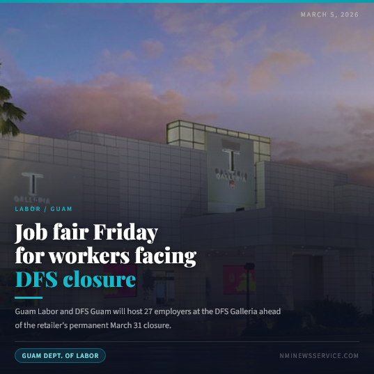 HAGÅTÑA — The Guam Department of Labor and DFS Guam will co-host a job fair Friday at the DFS Galleria for employees facing displacement ahead of the retail giant’s permanent closure at the end of the month.
