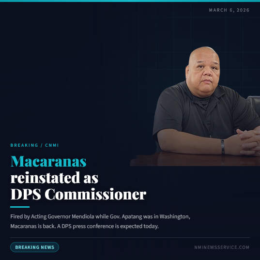 SAIPAN — Police Commissioner Anthony Macaranas has been reinstated to his position at the Department of Public Safety. Macaranas was reinstated Thursday morning, days after Acting Governor Dennis Mendiola fired him while Governor David Apatang was in Washington, D.C. on a federal engagement trip.