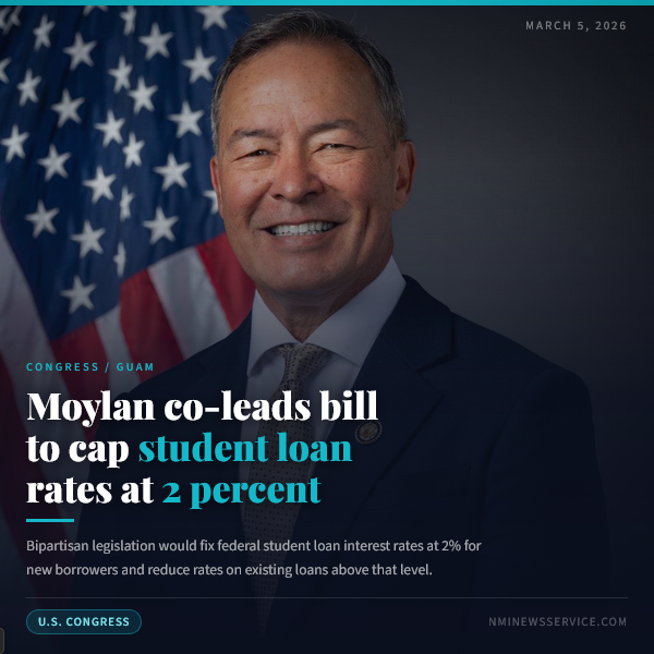 WASHINGTON — Congressman James Moylan is co-leading bipartisan legislation that would cap interest rates on federal student loans at 2 percent, a move backers say would reduce long-term debt burdens for borrowers in Guam and across the country.
