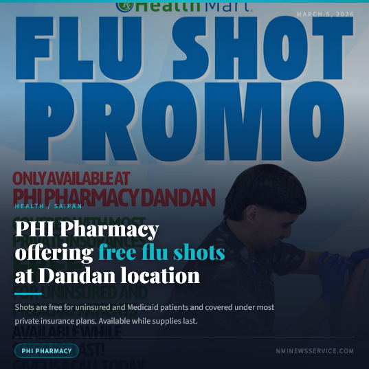SAIPAN — PHI Pharmacy is running a flu shot promotion at its Dandan location, with vaccinations covered under most private insurance plans and available at no cost to uninsured and Medicaid patients.