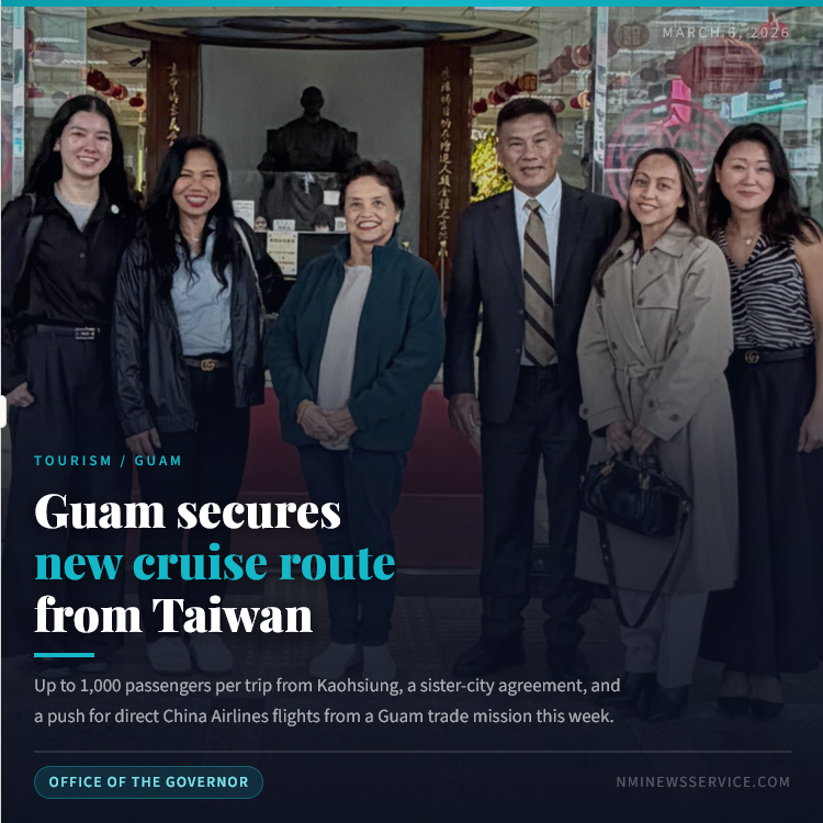 KAOHSIUNG, Taiwan — Guam Governor Lou Leon Guerrero has secured a new ocean liner cruise service from Kaohsiung, Taiwan that will bring up to 1,000 passengers per trip to the island, as part of a joint trade and investment mission that also produced a sister-city agreement and potential new air service.