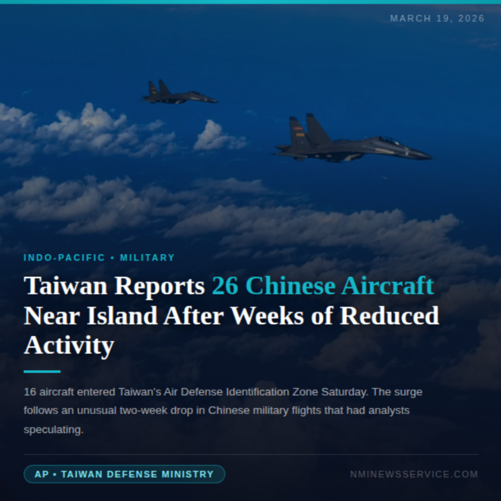 After quieter weeks, Taiwan reports large-scale Chinese military aircraft presence near the island