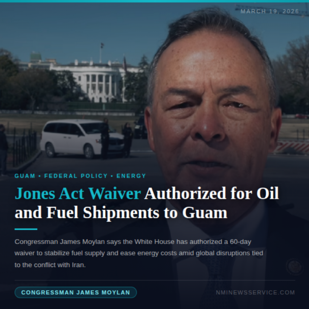 WASHINGTON — Congressman James Moylan announced Wednesday that the President has authorized a 60-day waiver of the Jones Act for oil and fuel shipments, a move he said will help stabilize fuel supply and ease energy costs for Guam families amid global supply disruptions tied to the ongoing conflict with Iran.