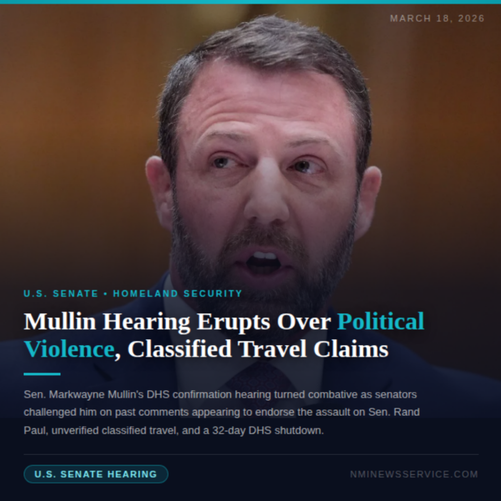 Senate Confirms Nomination Hearing for Mullin as DHS Secretary Marked by Confrontation Over Violence, Classified Travel Claims