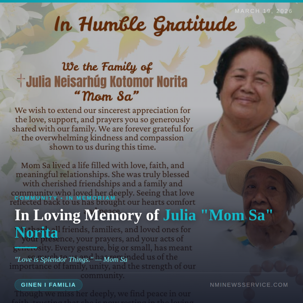 The family of the late Julia Neisarhúg Kotomor Norita, known lovingly to her family and community as “Mom Sa,” has extended their heartfelt thanks to all who offered love, support and prayers during their time of loss.