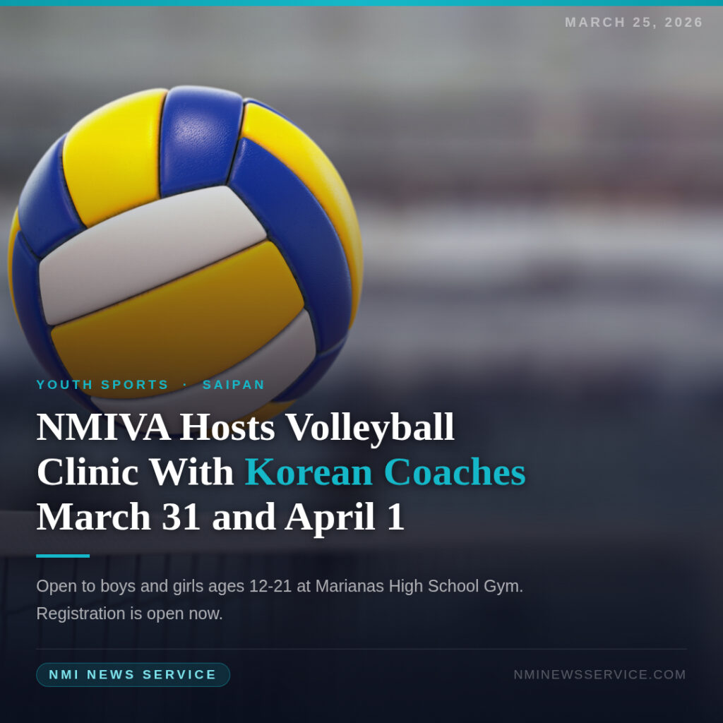 SAIPAN — The Northern Mariana Islands Volleyball Association will host a two-day volleyball clinic at Marianas High School Gym on March 31 and April 1, featuring special guest coaches from South Korea.