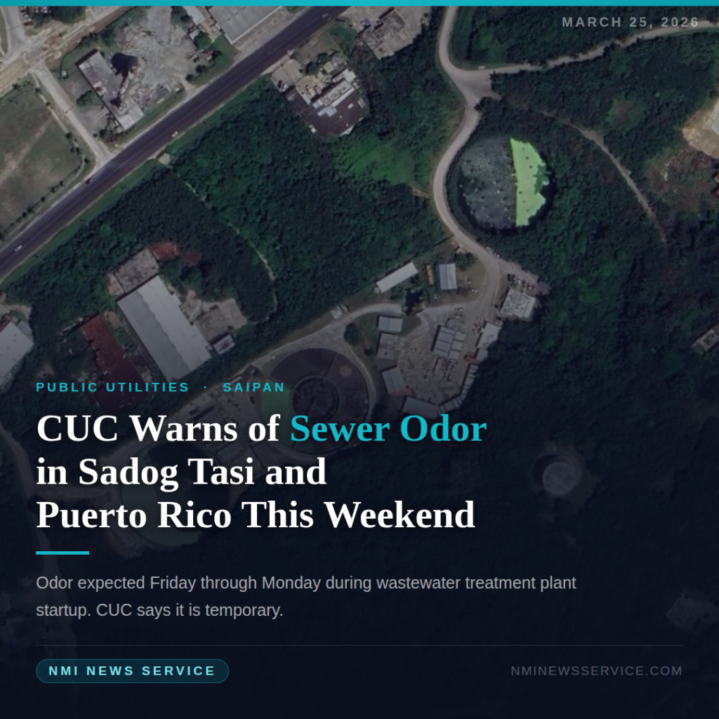 SAIPAN — Residents in the Sadog Tasi and Puerto Rico areas can expect a noticeable sewage odor from Friday, March 27, through Monday, March 30, the Commonwealth Utilities Corporation said Wednesday.