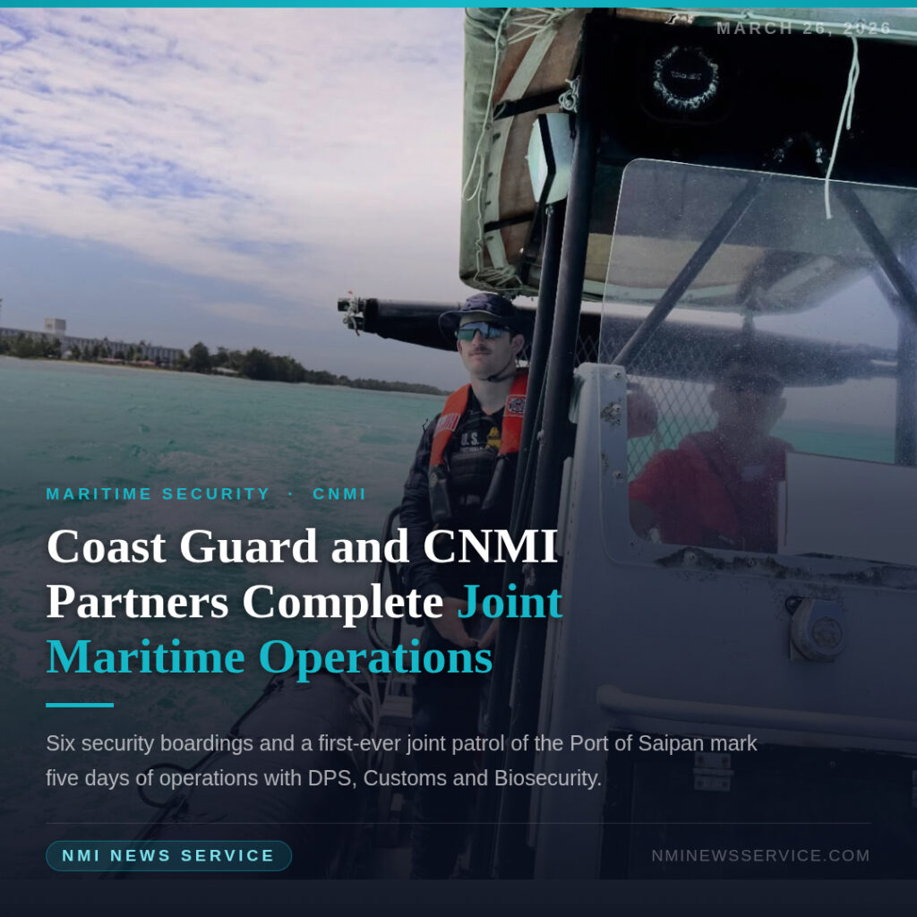 SAIPAN — U.S. Coast Guard Forces Micronesia’s Sector Boarding Team joined the CNMI Department of Public Safety, Customs, Biosecurity and local agency partners last week for five days of joint maritime operations in and around Saipan.
