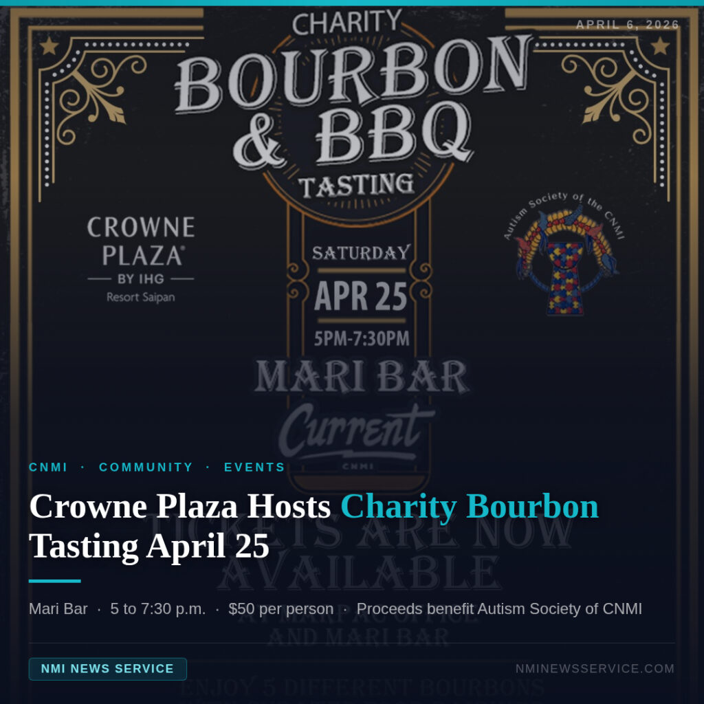 SAIPAN — The Crowne Plaza Resort Saipan will host a Charity Bourbon and BBQ Tasting event on Saturday, April 25, from 5 to 7:30 p.m. at the Mari Bar, with proceeds benefiting the Autism Society of the CNMI.
