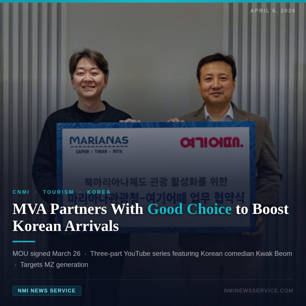 SAIPAN — The Marianas Visitors Authority has signed a memorandum of understanding with Good Choice, one of Korea’s leading travel and leisure platforms, to launch joint marketing initiatives aimed at driving visitor arrivals to the Marianas.