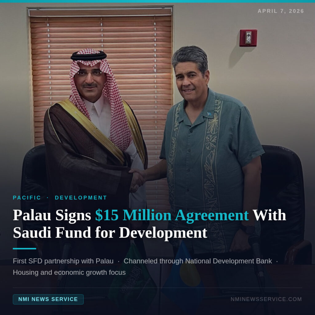 MELEKEOK, Palau — President Surangel S. Whipps Jr. and the Saudi Fund for Development have signed a $15 million loan agreement, marking the first development partnership between Palau and the Saudi-based financing body.