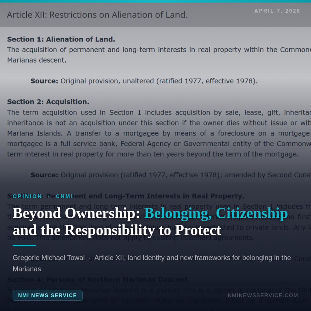 In the Northern Mariana Islands, conversations about land often surface deeper questions that are not truly about land alone. They are about belonging, identity, and what it means to be rooted in a place across generations. For many who were born and raised in the Commonwealth but are not of Northern Marianas Descent, there exists a real and deeply felt tension. It is the experience of loving a place, representing it, and carrying it wherever one goes, while also recognizing that there are limits to how that connection is formally acknowledged. That feeling is not imagined. It is lived, and it deserves to be understood with care.