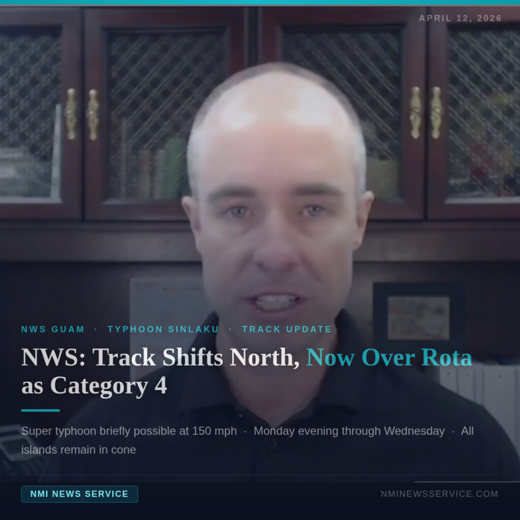 SAIPAN — The forecast track for Typhoon Sinlaku shifted significantly overnight, with the Joint Typhoon Warning Center’s 7 a.m. Sunday track now showing the storm passing directly over Rota as a Category 4 typhoon, National Weather Service meteorologist-in-charge Brandon Aydlett said Sunday morning.