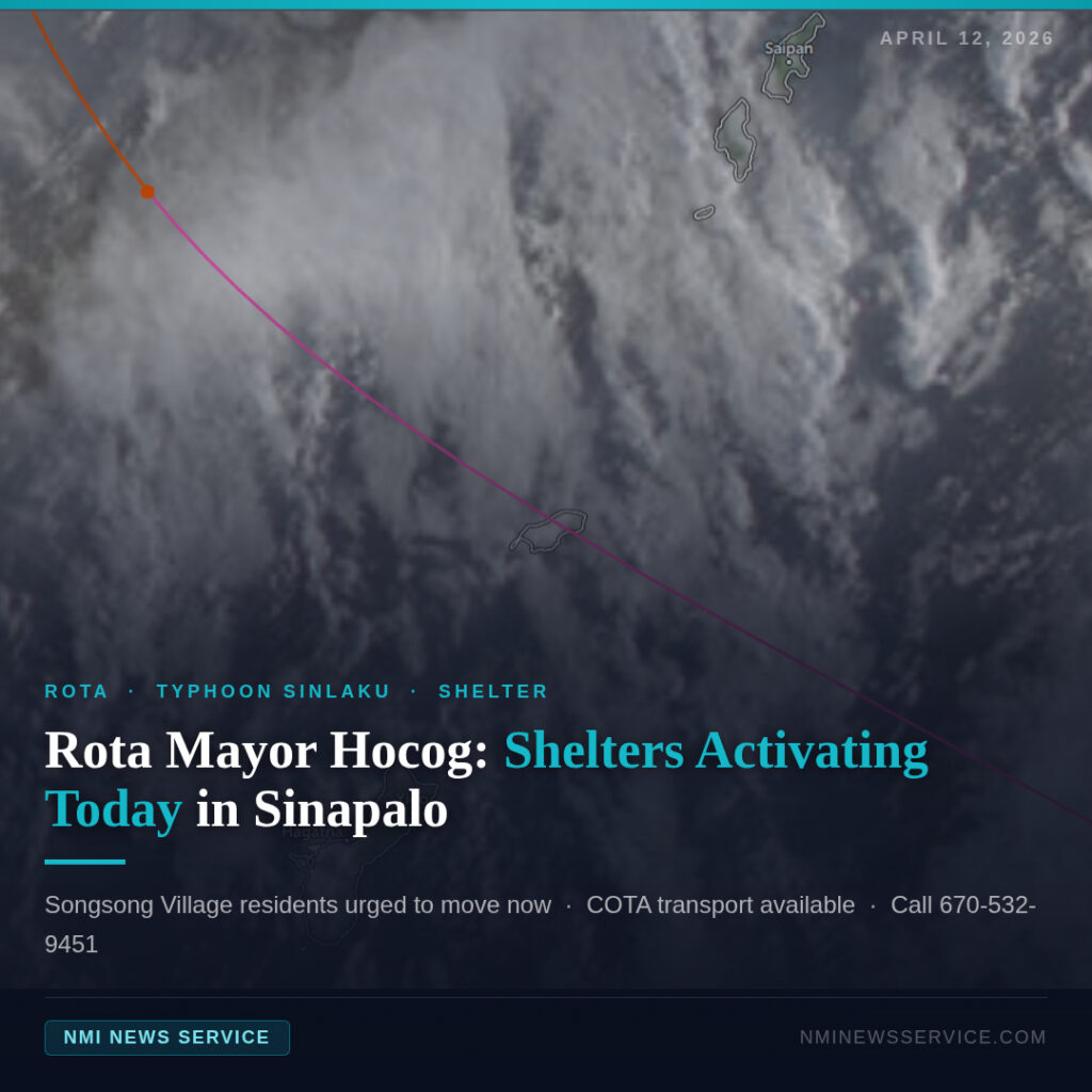 ROTA — Rota Mayor Aubry Hocog said Sunday morning that the island’s emergency shelter is ready to activate later in the day and urged residents in low-lying areas of Songsong Village to consider moving to higher ground as Typhoon Sinlaku’s track shifts toward a direct hit on Rota.