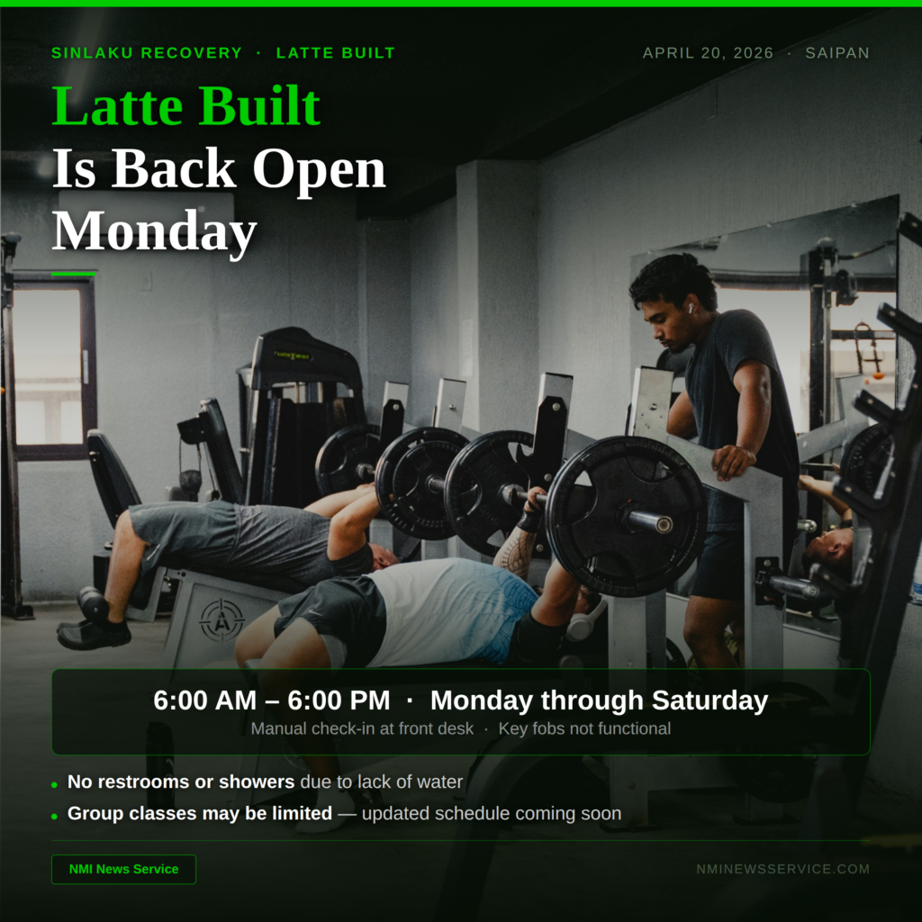 SAIPAN — Latte Built will reopen Monday, April 20 with adjusted operating hours of 6:00 AM to 6:00 PM, Monday through Saturday, following minor damage and flooding from Typhoon Sinlaku.