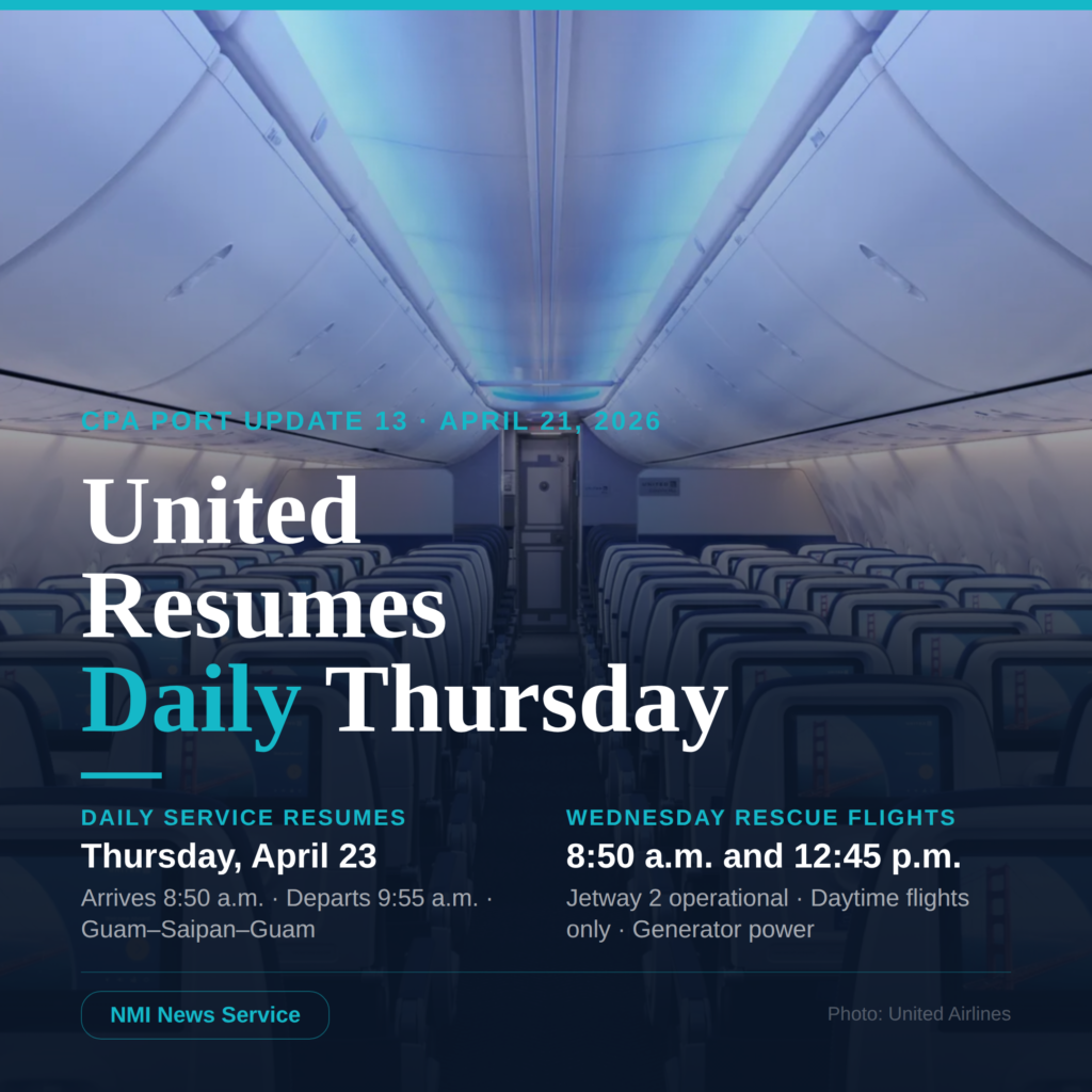 SAIPAN — United Airlines will resume daily flights between Saipan and Guam beginning Thursday, April 23, the Commonwealth Ports Authority announced Tuesday in Port Update 13.