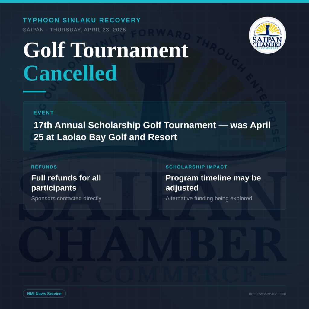 SAIPAN — The Saipan Chamber of Commerce has cancelled its 17th Annual Scholarship Golf Tournament, originally scheduled for April 25, 2026 at Laolao Bay Golf and Resort, due to the impact of Super Typhoon Sinlaku.