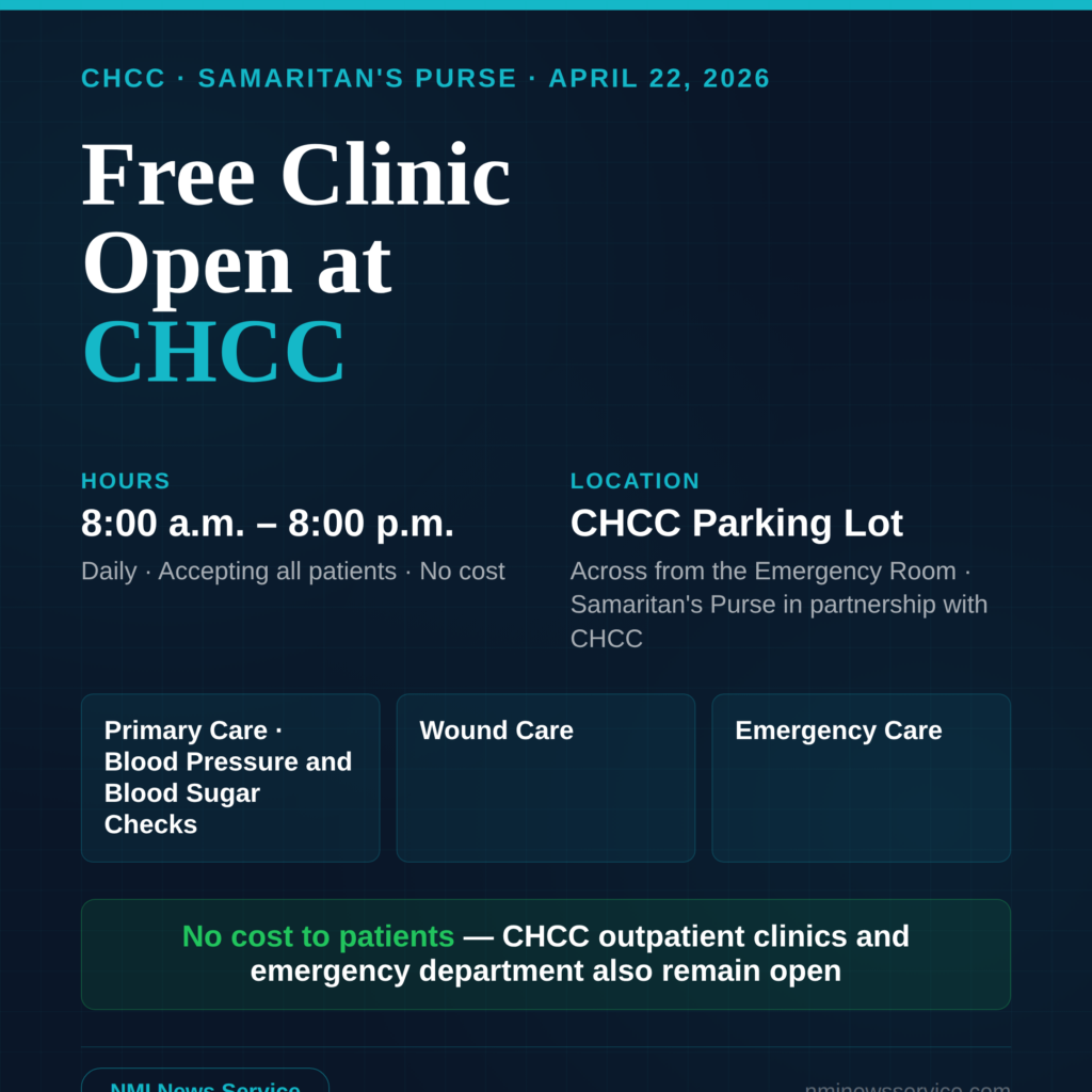 SAIPAN — Samaritan’s Purse has opened a free outpatient clinic in partnership with the Commonwealth Healthcare Corporation, set up in the parking lot across from the CHCC Emergency Room and accepting all patients at no cost.
