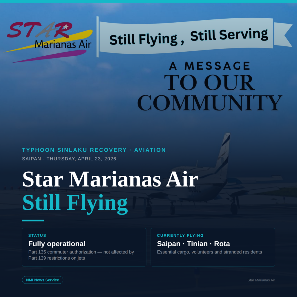 SAIPAN — Star Marianas Air is reassuring the public that it remains fully operational following reports that some air carriers would suspend service, clarifying that its federal authorizations allow it to continue flying while larger carriers are grounded during post-storm airport repairs.